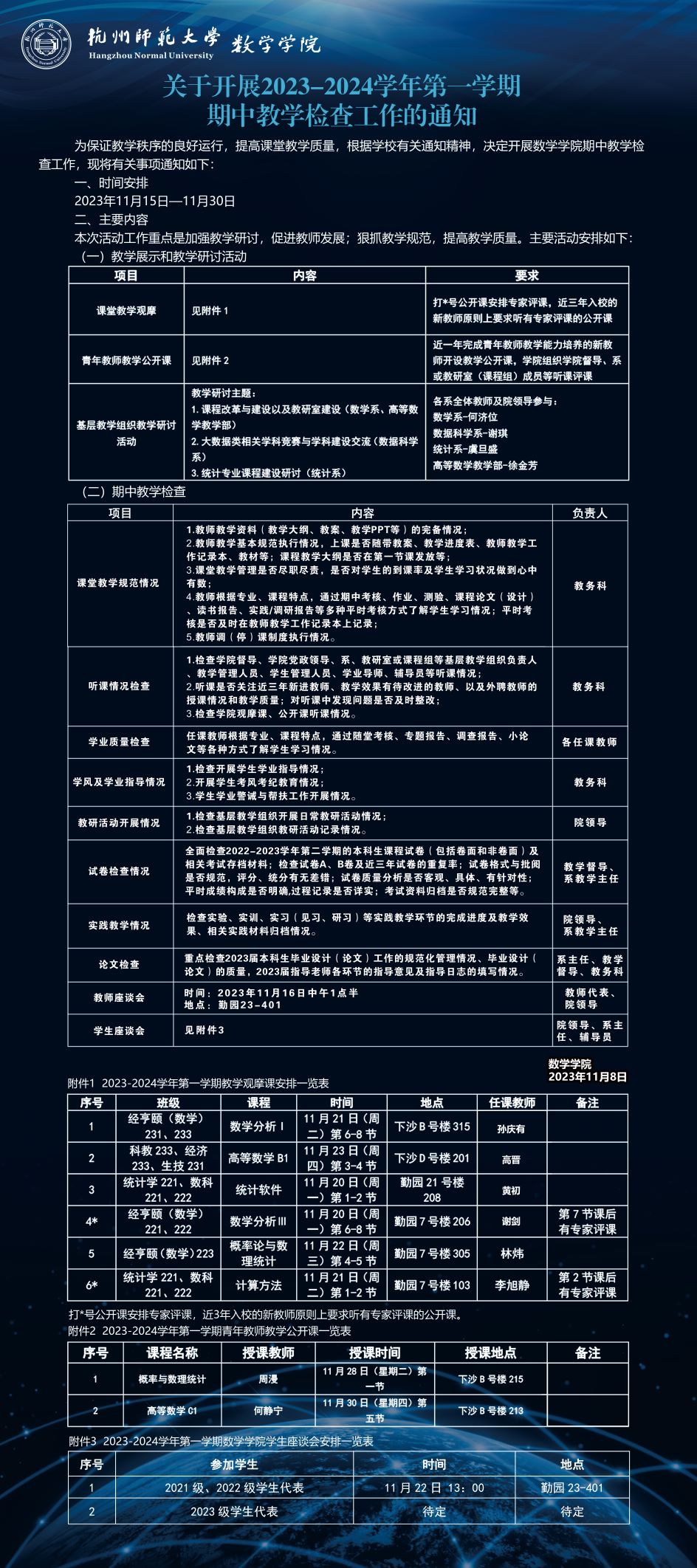 日本色情 2023-2024学年第一学期期中教学检查安排