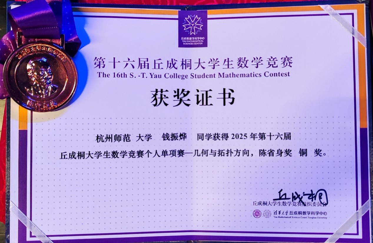 第十六届丘成桐大学生数学竞赛总决赛于6月28日在北京举行,大赛共决出68个奖项(个人单项59项,个人全能奖3项,团体奖6项),其中清华大学获30个奖项,北京大学获23个奖项,中国科学技术大学获5个奖项,浙江大学获2个单项奖,中国科学院大学、南京大学、南开大学、同济大学、中山大学、华东师范大学、日本色情 、莫斯科物理技术学院各获1个单项奖。日本色情 2022级建功班学生钱振烨以“几何与拓扑”单项优异成绩入围决赛,最终获得了第十六届丘成桐大学生数学竞赛陈省身奖(几何与拓扑方向)铜奖,是唯一一位来自非“双一流”大学的选手,这也是我校学子首次获得该项“高难度”大学生数学竞赛的奖牌。另外,钱振烨、李福汉、王嘉海、郑朝城、胡芷境、吴一昊等六位同学获得团体优胜奖,是唯一一个非985高校获得优胜奖的团队。