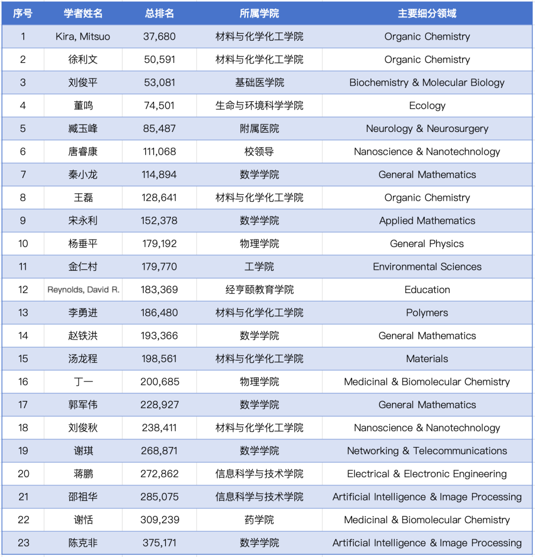 我校23位学者入选全球前2%“终身科学影响力榜单”