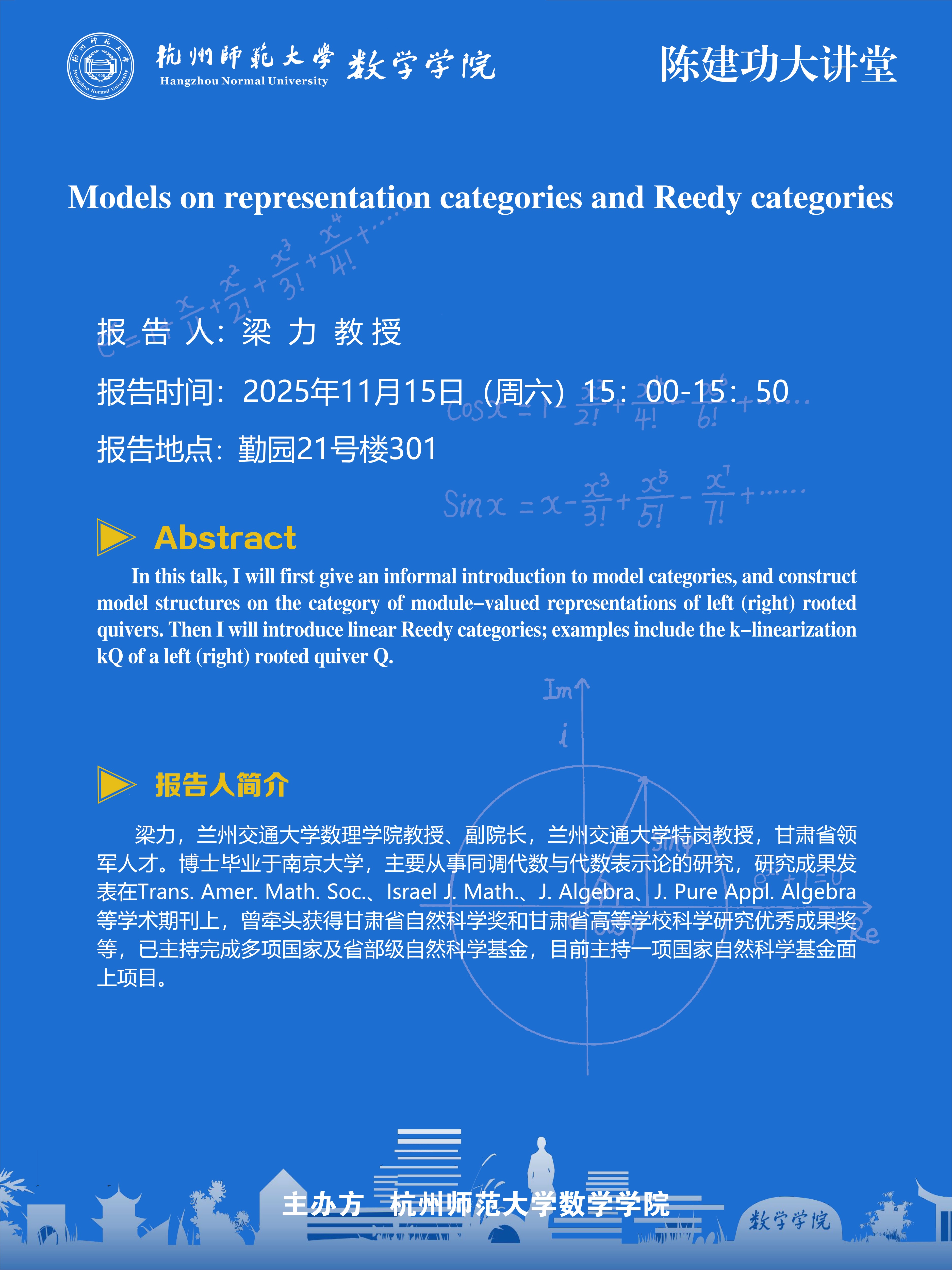 陈建功大讲堂(2025-129):Models on representation categories and Reedy categories