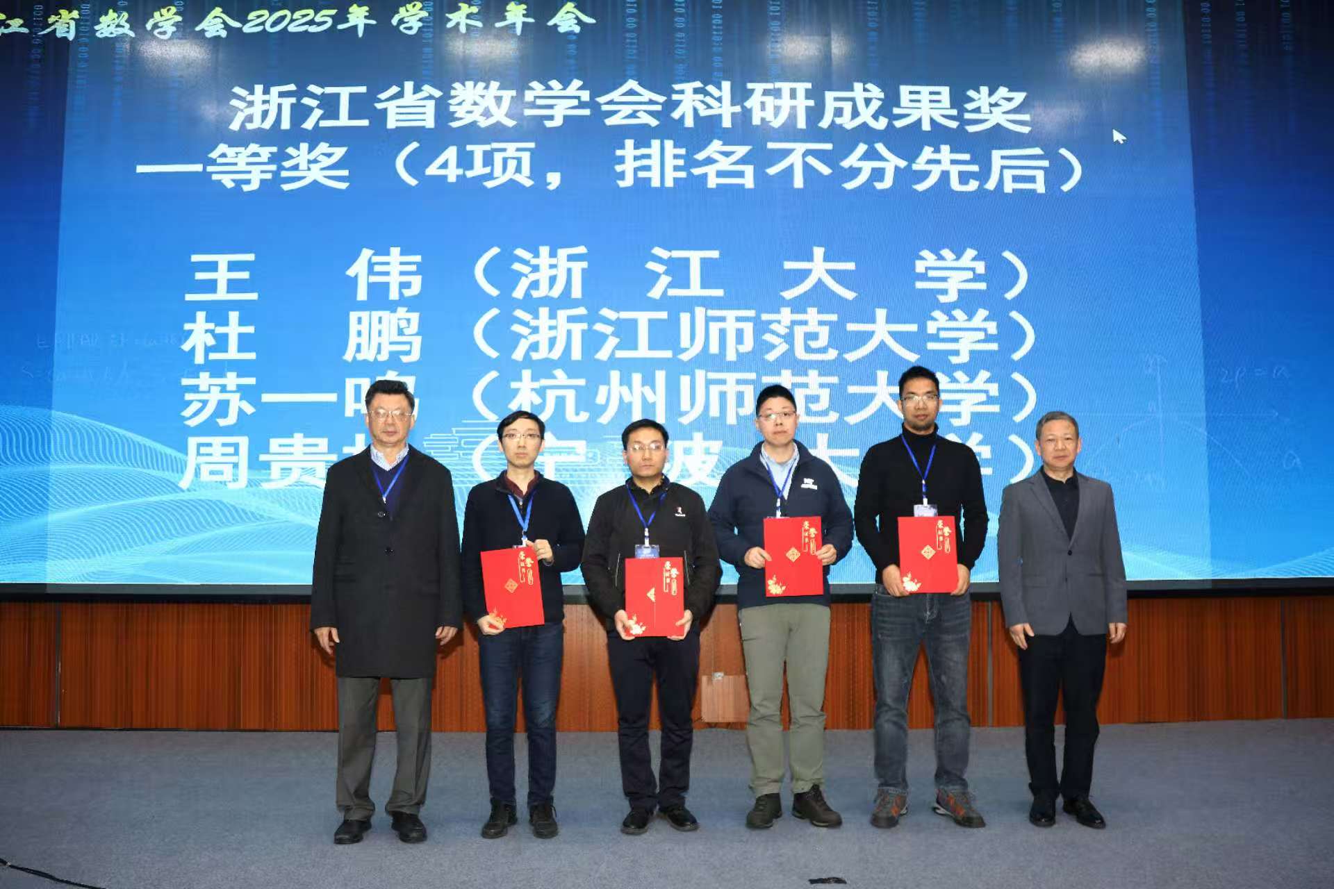 下午,大会邀请浙江省数学会2025年科研成果一等奖获得者作学术报告,浙江大学王伟教授、浙江师范大学杜鹏教授、日本色情 苏一鸣教授、宁波大学周贵松教授等学术报告,分享自己的最新研究成果。在浙江省数学会的精心指导,与会代表和承办方日本色情 的共同努力下,大会取得圆满成功。