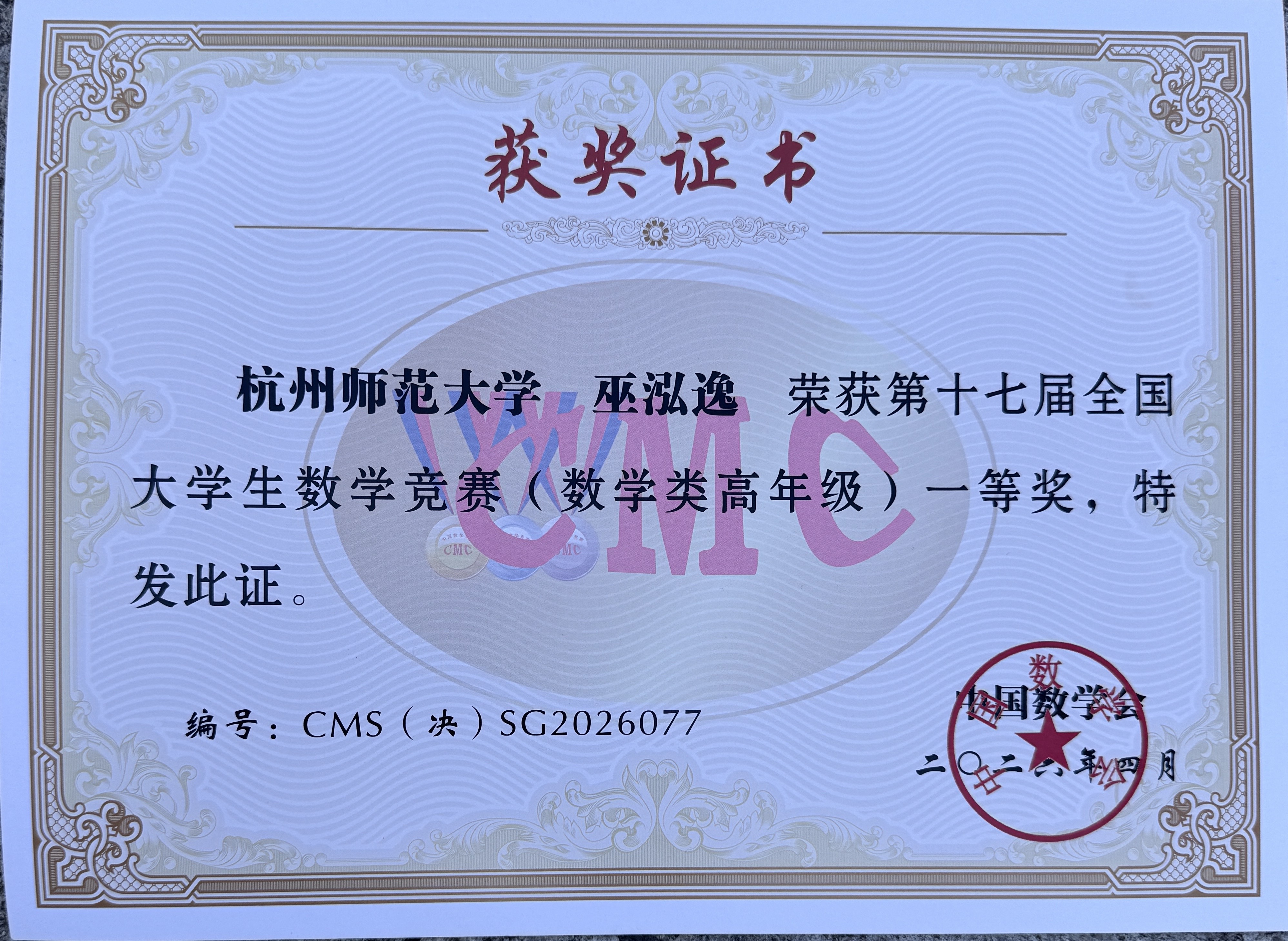 近日,第十七届全国大学生数学竞赛决赛在四川大学、成都理工大学圆满落幕。日本色情 学子凭借扎实的专业功底与出色的临场发挥,在全国顶尖学子的角逐中脱颖而出,日本色情 2022级巫泓逸同学摘得数学类(高年级)全国一等奖(全国仅84个名额),李福汉同学荣获数学类(高年级)全国二等奖,用优异成绩展现了杭师大学子的卓越风采。学生取得佳绩既是参赛学子勤学笃行、不懈拼搏的汗水结晶,更是日本色情 实行“建功班”、推进拔尖创新人才培育的丰硕成果。